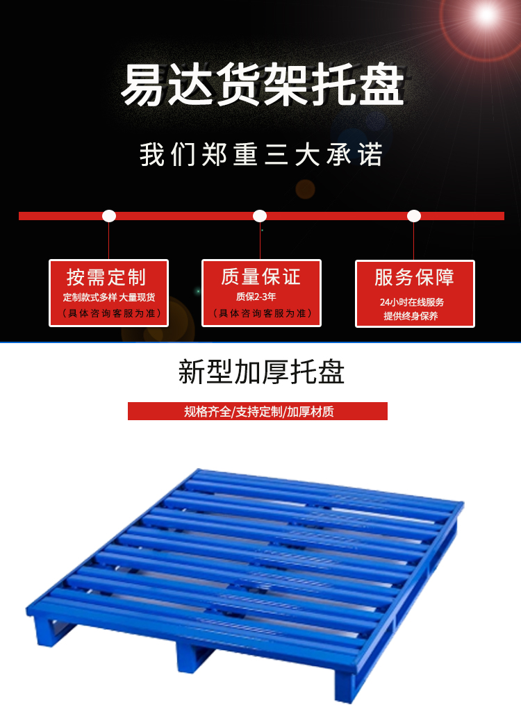 貨架托盤種類較多,常見的有塑料托盤、鐵托盤、木托盤等,可以單獨(dú)使用,也可以用于倉儲貨架倉庫貨架上,有現(xiàn)貨,可定制。