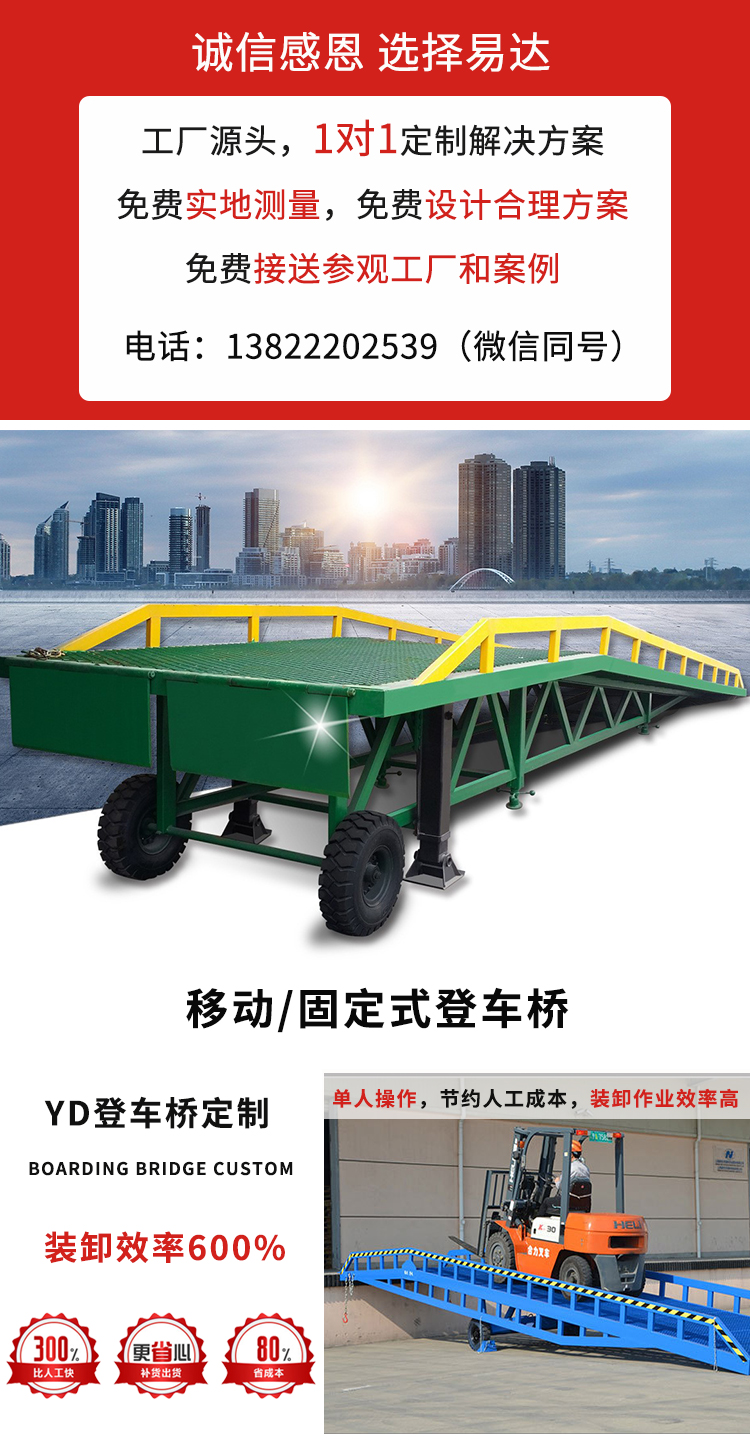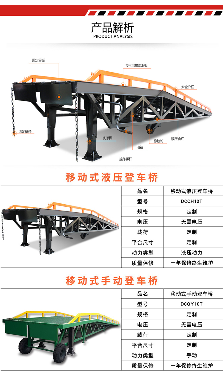 登車橋只要用于貨物裝車或卸貨的時(shí)候使用,款式多樣,可滿足貨物不同方式的上下貨,提高作業(yè)效率,節(jié)省人力物力。