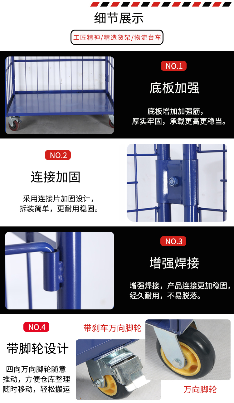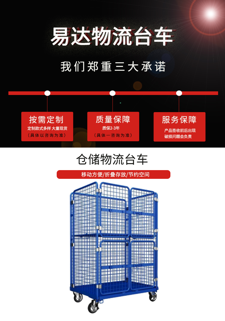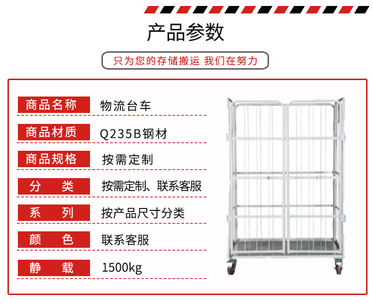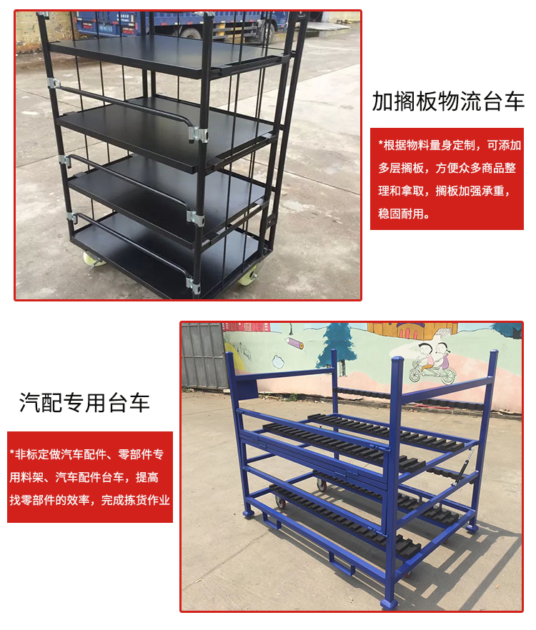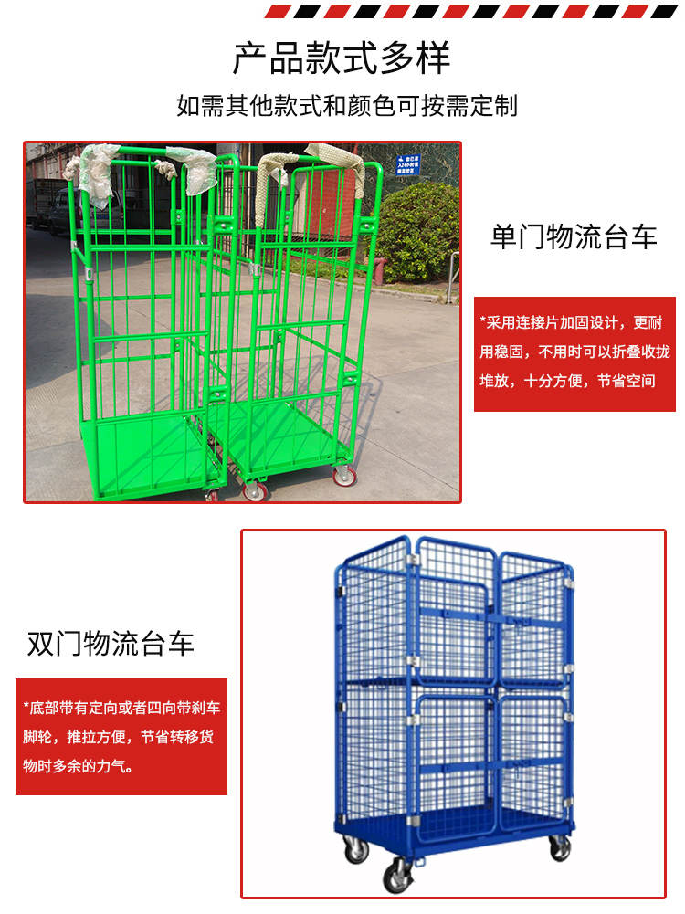 物流臺車也叫物流籠車,主要用于貨物的存儲及周轉。多種款式、顏色多樣,可按需求定制。